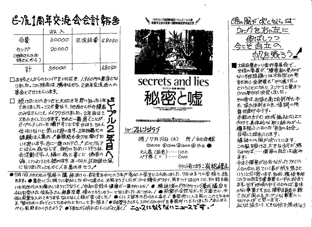 | ▼ピープル発足から1年たちました。(2ページ) |